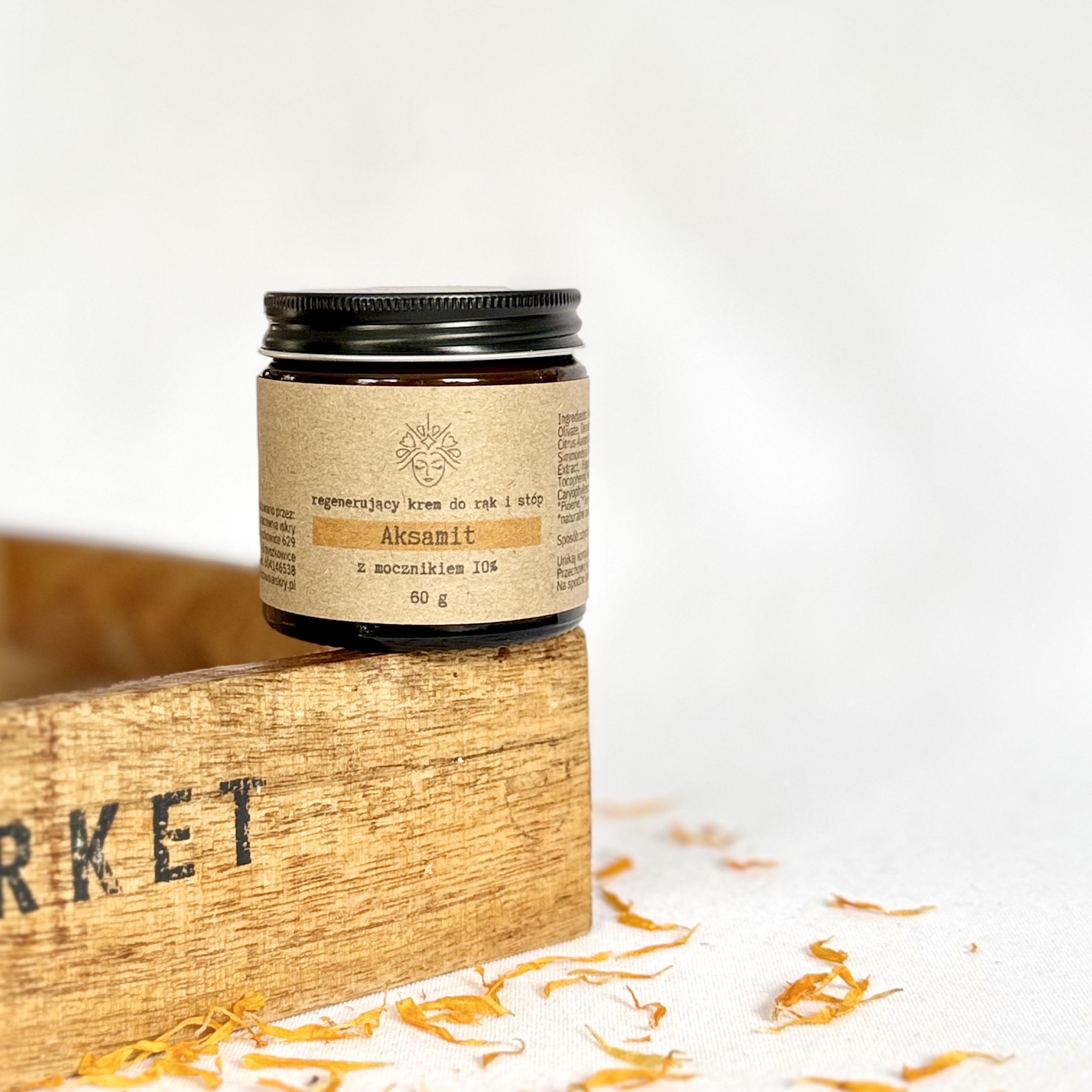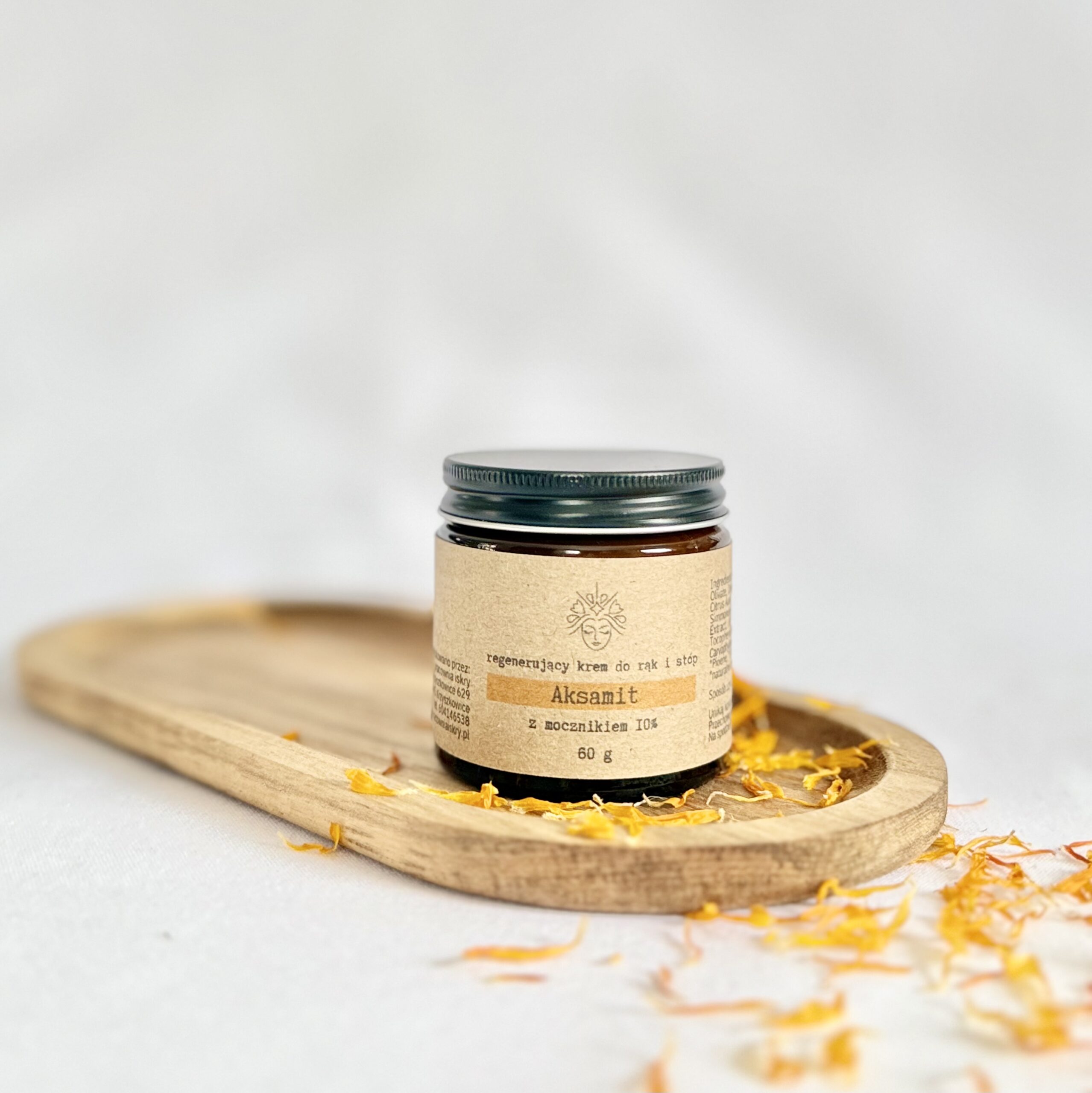 Aksamit to bogaty, naturalny krem do rąk i stóp, który intensywnie nawilża, regeneruje i zmiękcza skórę, przywracając jej komfort, elastyczność i poczucie ukojenia wtedy, gdy naprawdę tego potrzebuje.