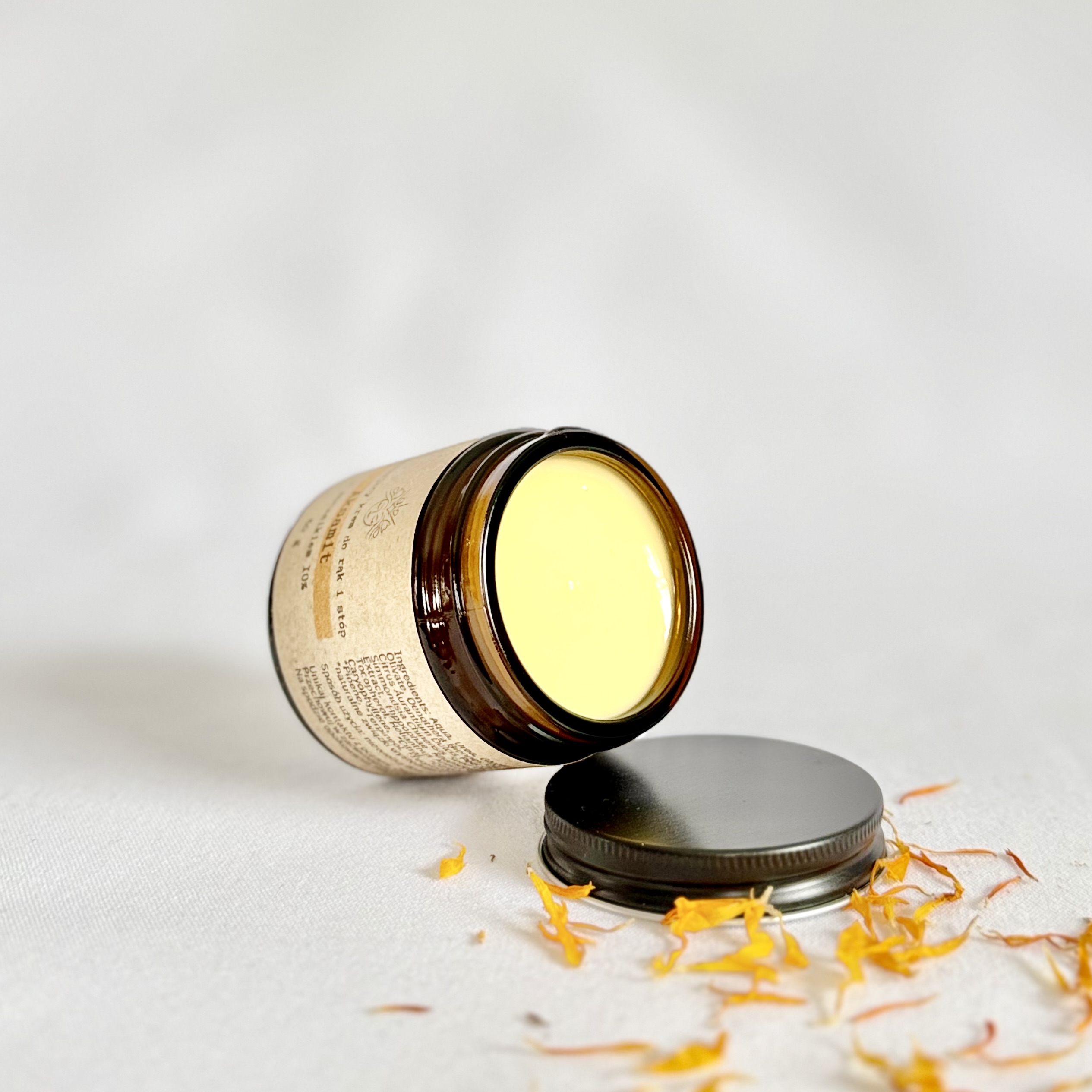 • Lanolina, masło shea i woski roślinne tworzą na powierzchni skóry delikatną warstwę ochronną, która ogranicza utratę wody i zwiększa poczucie komfortu.