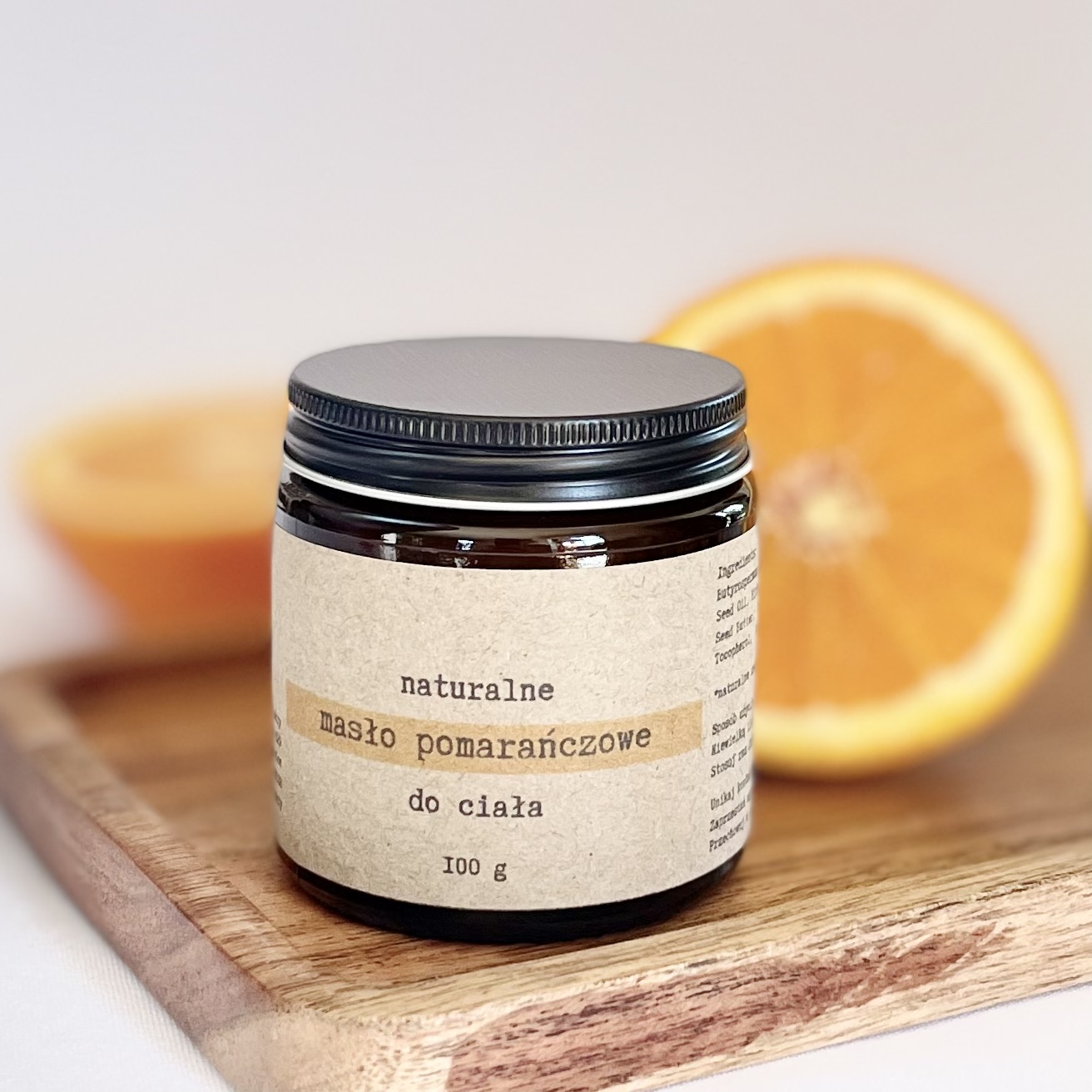 • Podstawowym składnikiem Masła pomarańczowego jest masło shea (absolutny cud natury!), które odżywia i koi skórę.