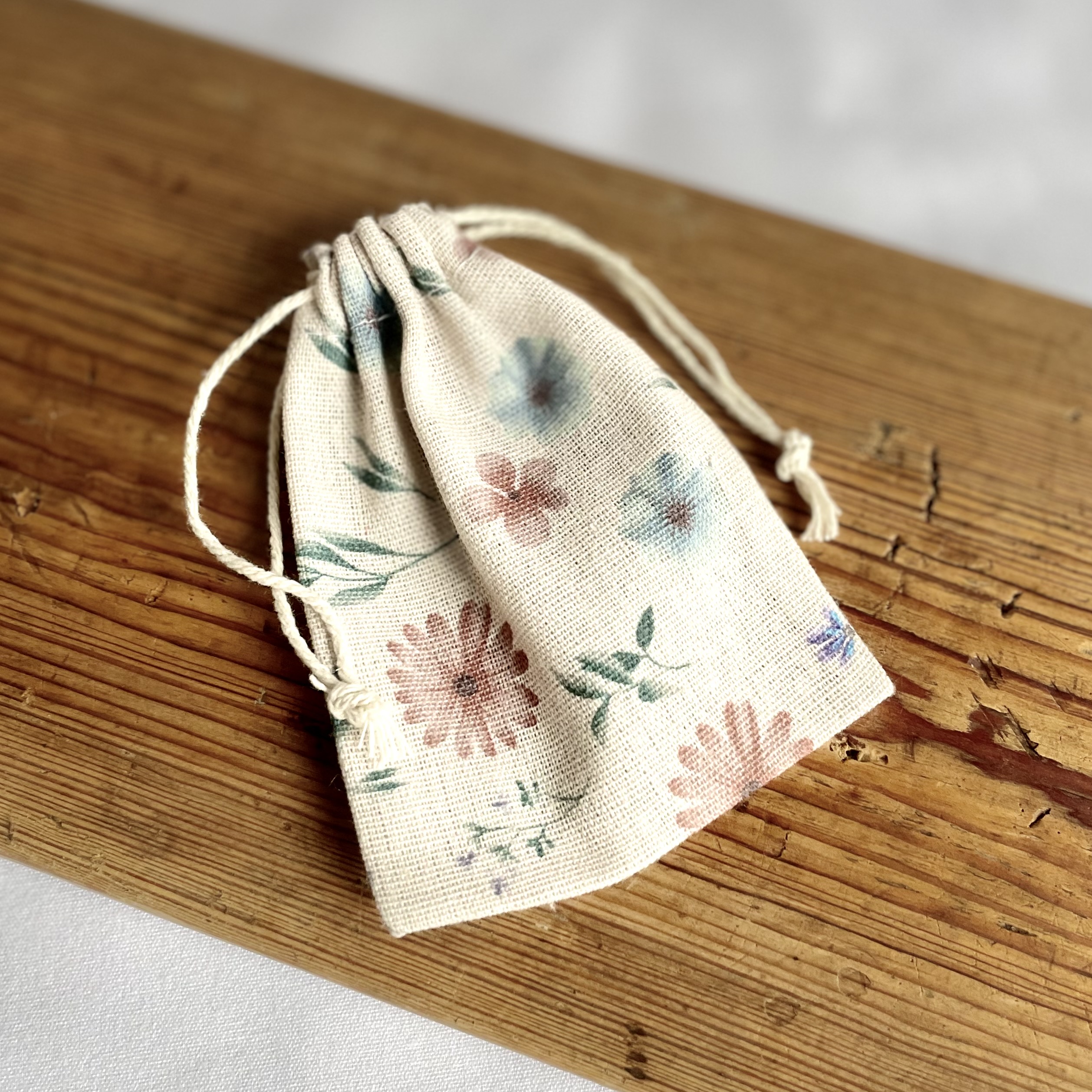 Woreczek lniany z kwiatowym nadrukiem